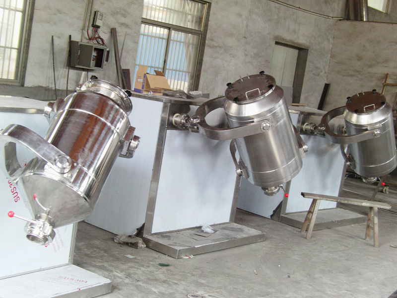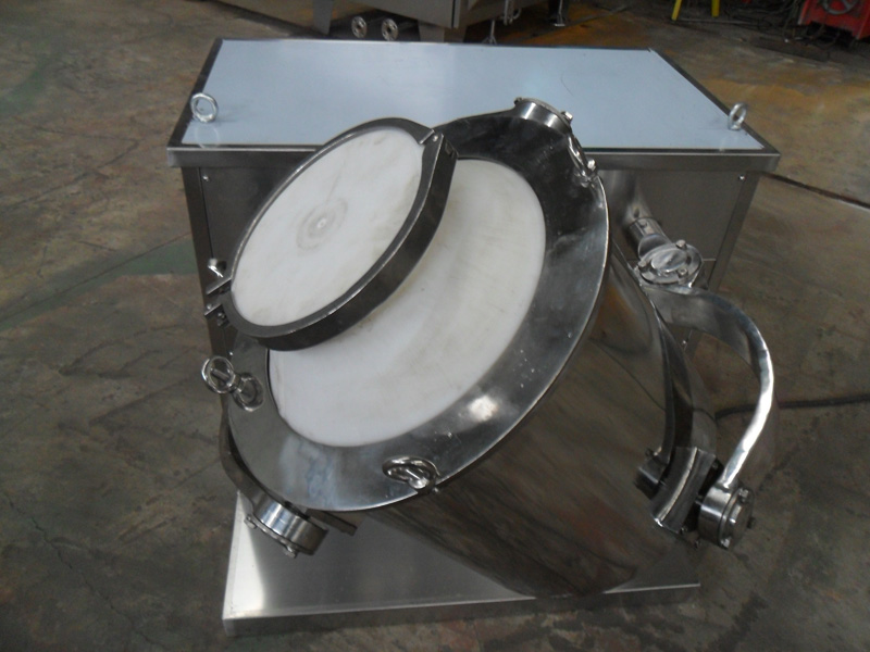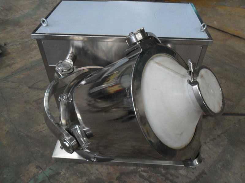 结构:该机由机座、传动系统、电器控制系统、多向运动机构、混合筒等部件组成。与物料直接接触的混合筒采用优质不锈钢材料制造,桶体内外壁均经镜面抛光。
