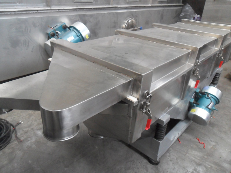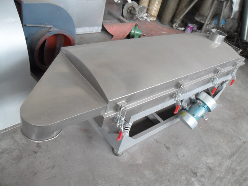 本机上部采用快拆式手柄,把整机连成一个整体,上盖全密封、有效防止物料在过筛时由于振动而产生粉尘飞扬。筛体下部安装振动电机,有效保证了物料的结构紧凑,下部采用弹簧减振,使整机在平稳状态下工作。下面底座采用可调式,可调节正在过筛时的筛面倾斜角度,根据物料特性以取得佳过筛效果。