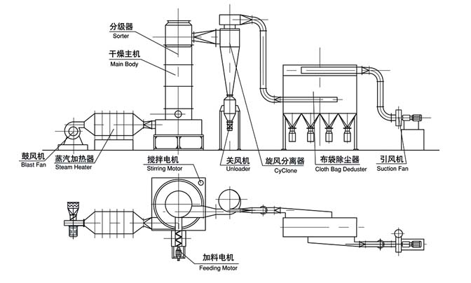 ● 干燥室内周向气速高,物料停留时间短,有效防止物料粘壁及热敏性物料变质现象,达到高效、快速、小设备、大生产。