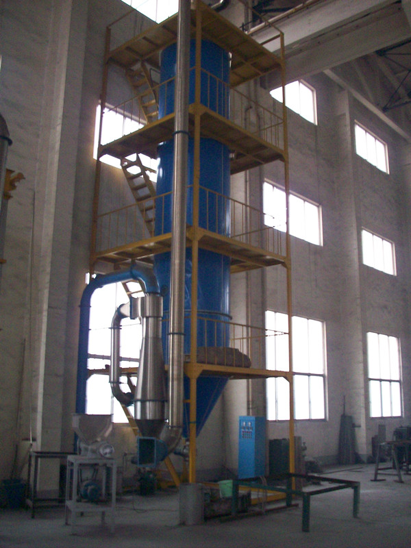 压力喷雾干燥机是一种可以同时完成干燥和造粒的装置。按工艺要求可以调节料液泵的压力、流量、喷孔的大小。得到所需的一定大小比例的球形颗粒。